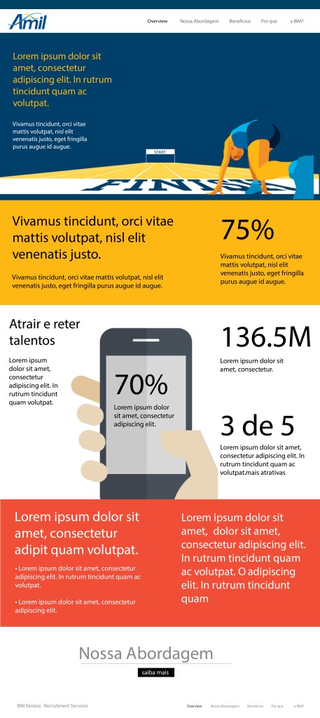 This was one of my first IBM projects, I was responsible for creating a website where IBM could sell the Kenexa solution to Amil, a big healthy company in Brazil. The result was a success in the way IBM engages with its clients and presents solutions, helping them to understand how the technology works compellingly.